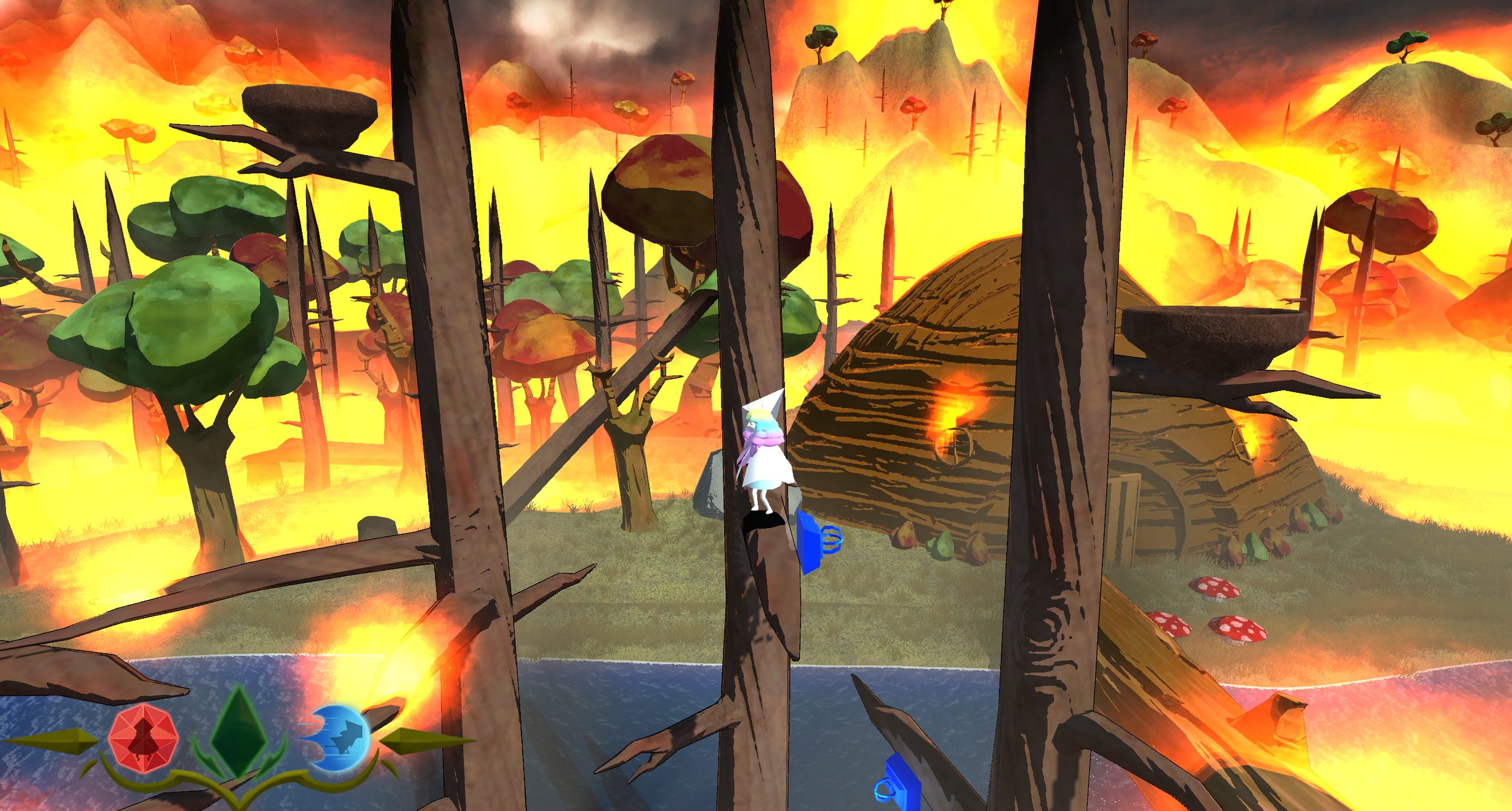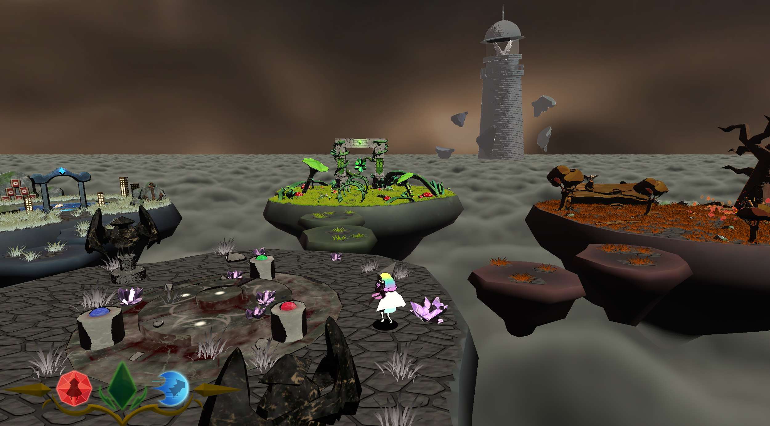 Yunoia is a 2.5D puzzle-platformer in which you play as Iris, a light spirit, as she traverses several levels symbolizing one's journey through the 5 stages of grief, to hopefully restore color to her world. The color was stolen by the main antagonist Eris, whom the player confronts in the final level. Yunoia features three unique gameplay mechanics: a grapple, a pulse, and a crystal clone.
